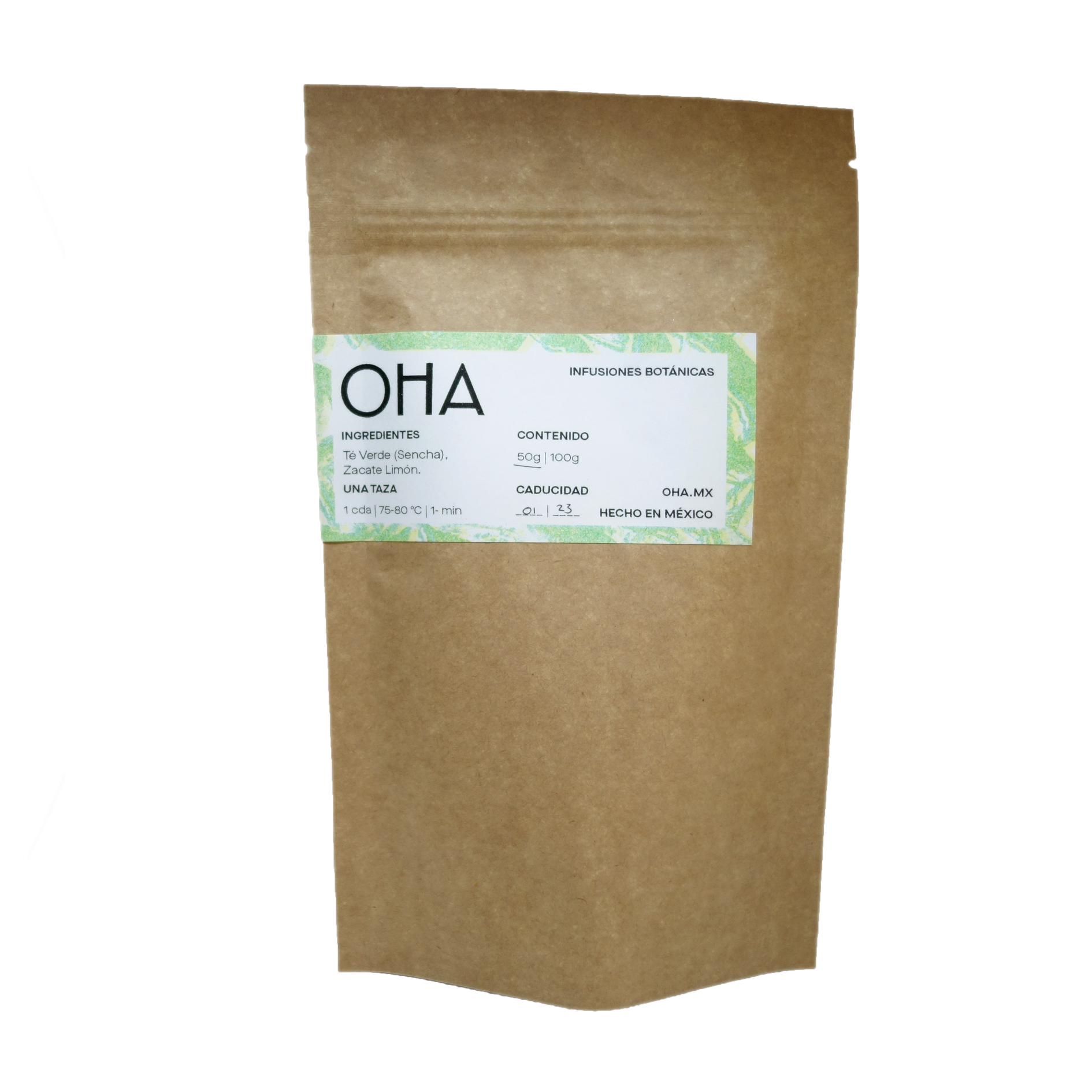 El sencha es un té verde japonés y el zacate limón (o lemongrass) está recién cortado del jardín de mis papás en Malinalco. El sabor es fresco y alimonado, funciona como té frío o caliente. Se prepara con agua no tan caliente, idealmente a 80°, y se infusiona por 2 minutos, no más porque se puede amargar.